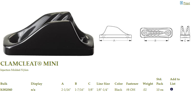 Sealeack Designs CLAMCLEAT MINI CL204 - Each